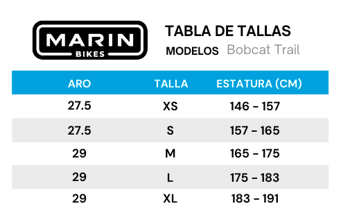 Todos los modelos Bobcat Trail de Marin, cuentan con geometría Trail, baja altura, tubo de dirección holgado y ángulos de tubo de asiento empinados, lo que brinda a los ciclistas confianza y un manejo predecible para divertirse en el camino.