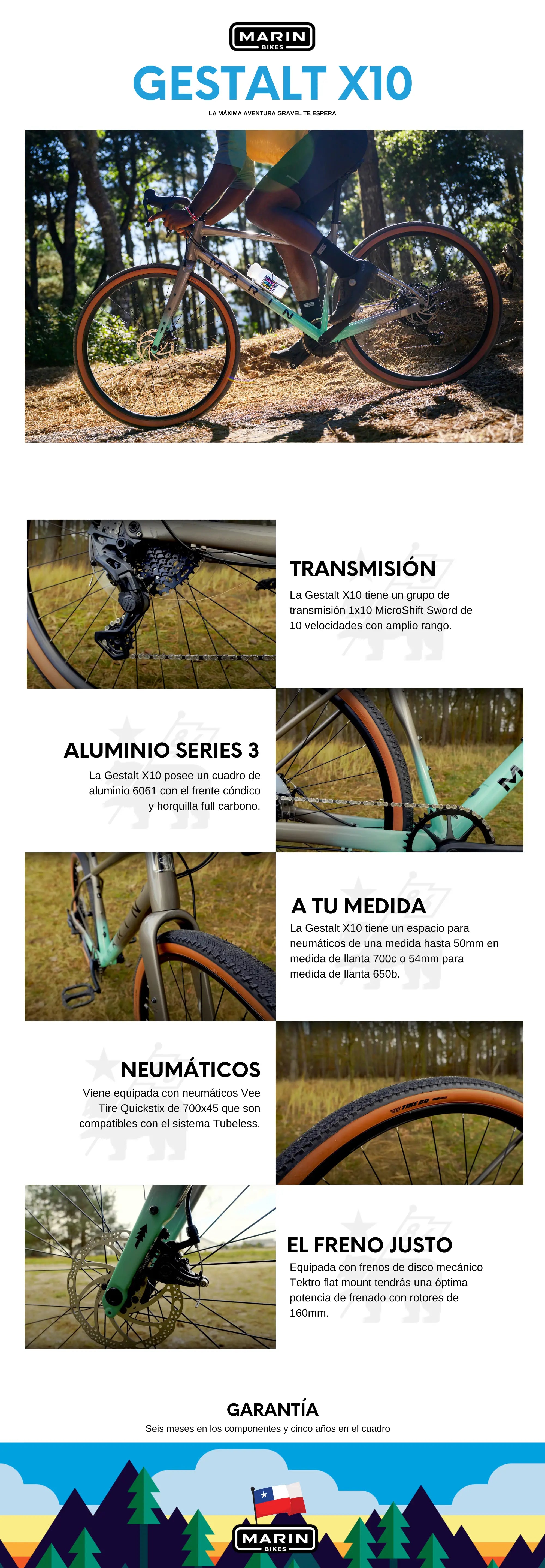 La Gestalt X10 significa más diversión a un precio increíble. Elige uno y podrás montar nuestro cuadro Gestalt X de aluminio Serie 3 inspirado en MTB y un montón de equipo resistente y capaz, que incluye un grupo microSHIFT de 10 velocidades, neumáticos Vee Tire Co de 45 mm de ancho cómodos y con buen agarre, frenos de disco Tektro y muchos componentes Marin increíbles.