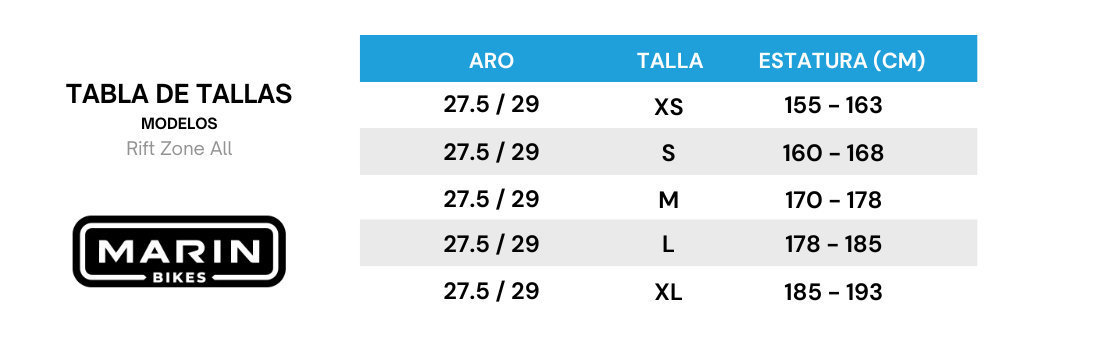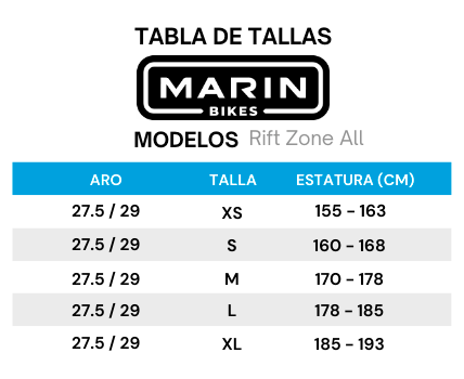 - Manillar: Marin Mini-Riser, 6061 Double Butted Aluminum, 780mm Ancho, 28mm Rise, 5º Up, 9º Back