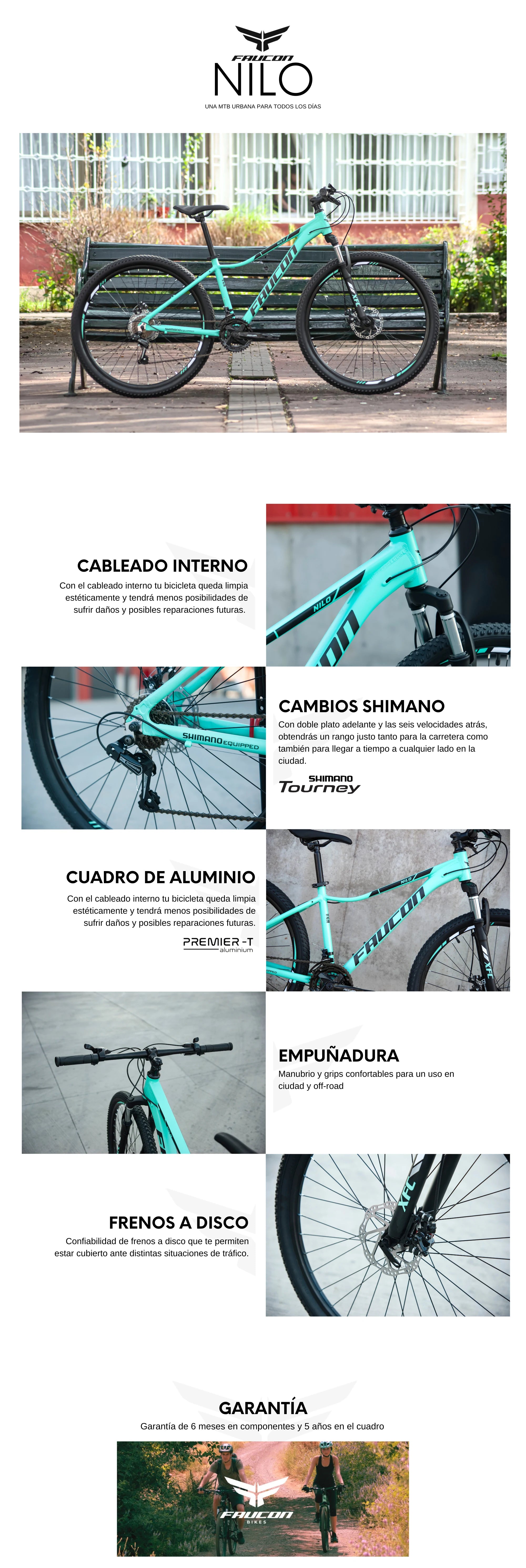 - Velocidades: 21 Velocidades con Shimano Tourney (3x7)