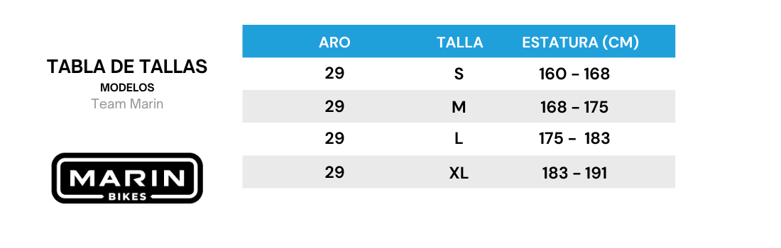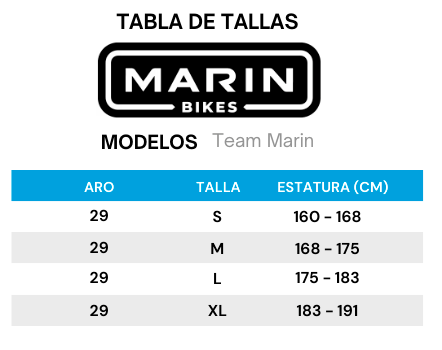 Diseñamos la Team Marin para que sea rapidísima, con una gran serenidad en los senderos más exigentes y un control perfecto en subidas, bajadas y subidas. Cuenta con la resistencia de una bicicleta de trail y la energía que esperarías de una XC para combinar a la perfección velocidad y diversión. ¿Quién dijo que el XC tenía que ser tan serio?
