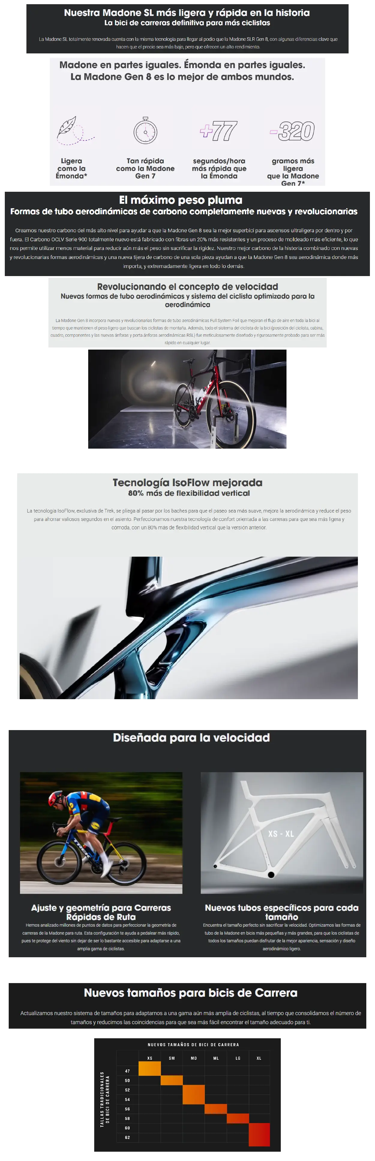 Las nuevas formas aerodinámicas de los tubos que aportan ligereza y velocidad junto con el liviano y asequible carbono OCLV Serie 500 hacen que la Gen 8 sea nuestro cuadro Madone SL Disc más ligero hasta ahora y el ideal para las bicicletas escaladoras.