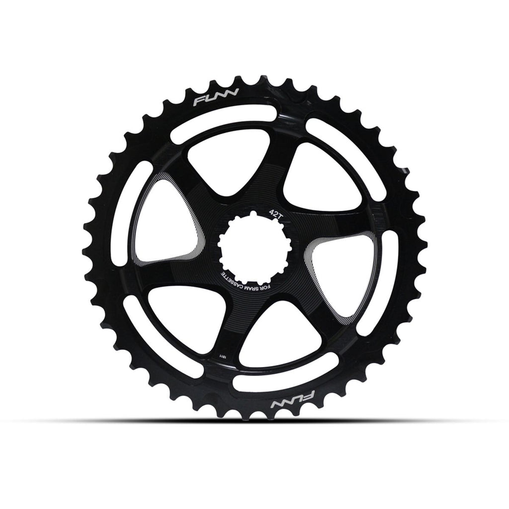 La FUNN OneUp 42T es una corona expansora diseñada para transmisiones con núcleo SRAM XD, ideal para ampliar el rango de cassettes y mejorar el rendimiento en subidas exigentes. Su construcción en aluminio CNC ofrece un equilibrio perfecto entre bajo peso, rigidez y durabilidad, siendo una mejora efectiva para configuraciones MTB de amplio rango.