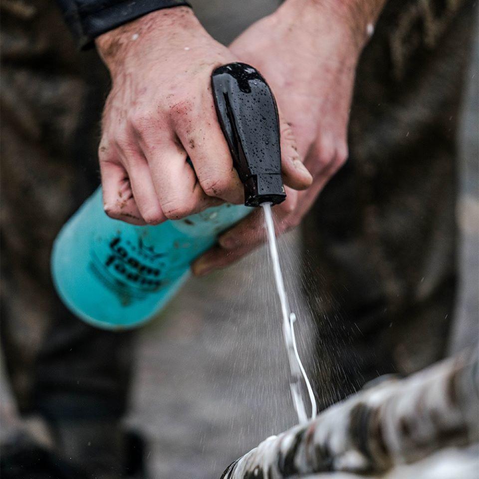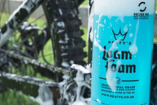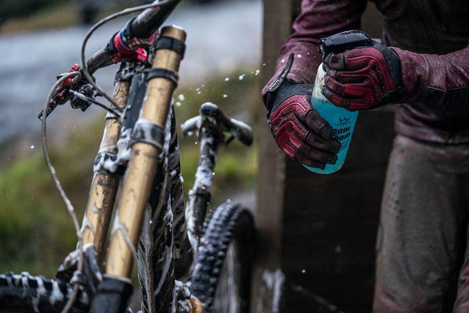 Simplemente aplique generosamente la espuma de Peaty en toda la bicicleta, espere de 3 a 5 minutos (tiempo para tomar un café / cerveza) y remueva con agua limpia.