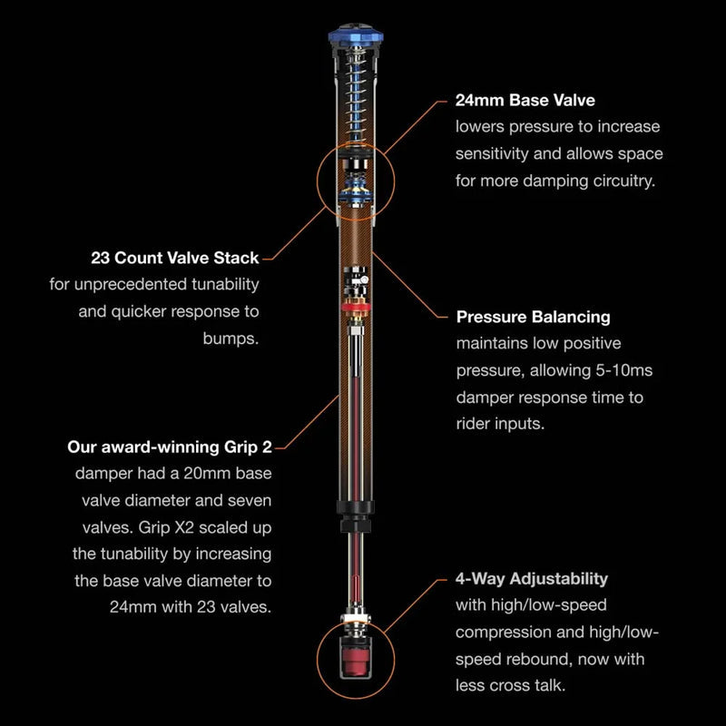 Lo nuevo que nos entrega FOX es un nuevo cartucho mas ajustable , con un mayor soporte y enfocado a la bajada jamas antes visto en Fox. Siente en el primer recorrido una mayor suavidad manteniendo tus neumatico mas pegados al piso entregando una mayor tracción y a su vez reduciendo la fatiga del ciclista en sus descensos