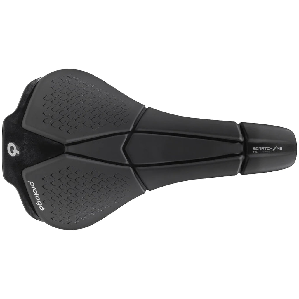 Prologo Scratch M5 es el nuevo sillín que utiliza tecnologías 4.0; innovadores en términos de tamaño, forma y ergonomía, son adecuados para múltiples usos: disciplinado (carretera / fuera de carretera), pero también adecuado para triatlón). Gracias al nuevo diseño, tamaño y ergonomía de “T SHAPE”, los M5 SCRATCHES son adecuados para uso de hombre / mujer. Las medidas son de 250 x 140 mm de ancho y los pesos varían según la configuración: el chaleco Nack con silla de montar pesa solo 149gr mientras que el Tirox 196gr. El nuevo sistema de asientos MSS Multi Section System, diseñado en cooperación con el Politécnico de Milán, ayuda a mejorar la comodidad y el rendimiento; Las espumas activas separadas entre sí crean 5 zonas que funcionan de manera inteligente e individual, favoreciendo el movimiento natural de la fase de pedaleo, tanto al empujar como al tirar, absorbiendo las vibraciones que el cuerpo de fibra transfiere al sillín.