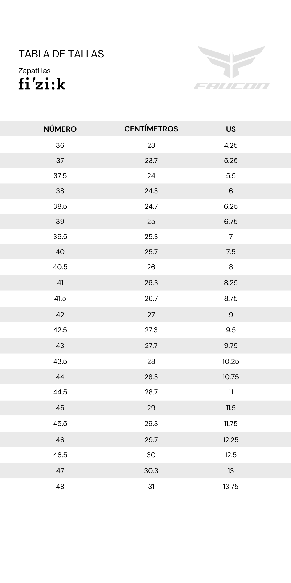 Tallas: 36-48 (37 a 47 también en medias tallas)